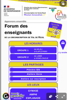 Si le document Genialy ne s’affiche pas vous pouvez cliquer sur ce lien : https://view.genially.com/68cbc3bfbeeba26428f2f084/presentation-le-forum-des-enseignants-rentree-2025