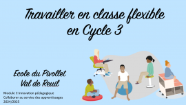 A la suite du Module C « Collaborer au service des apprentissages » et d’un projet CNR - Notre école Faisons Là Ensemble, validé, les 4 enseignants de l’école du Pivollet ont mis en place et expérimenté la classe flexible d’après la méthode Archiclasse afin d’expérimenter et analyser le changement de pratiques professionnelles auprès de leurs élèves. En voici leur analyse :