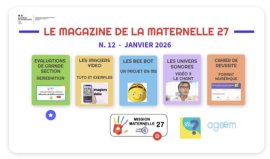 Magazine#12 - Janvier 2026 : Eléments de remédiations aux évaluations de GS en janvier, les imagiers en vidéo, un projet bee-bot en MS, les univers sonores : enseigner le chant, le cahier de réussite ua format numérique, l’AGEEM, la plateforme ALLO ORTHO.